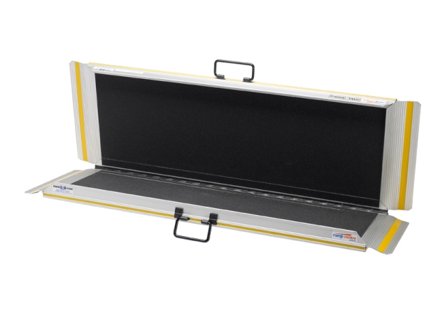 Salkkuramppi taittuu keskeltä ja vie säilytyksessä vain vähän tilaa. Salkkuramppi on ihanteellinen ravintoloiden ja kivijalkamyymälöiden rampiksi. Se on helppo asentaa paikalleen ja ottaa pois.